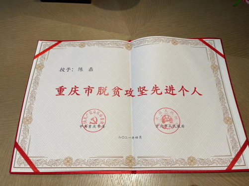 陈鼎同志荣获“重庆市脱贫攻坚先进个人”荣誉称号